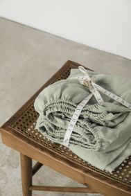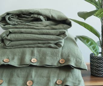 Discover our sage green linen bedding, designed for a perfect night's sleep and softening over time. Shop now with our easy returns policy!