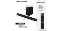 E9SAMHWQ800COB · INCLUDED IN THE BOX: · Samsung SoundbarSubwooferHDMI CableWall Mount KitRubber FootRemote Controller with Battery · BUNDLE INCLUDES: · Samsung Q-series 5.1.2 ch. Wireless Dolby ATMOS Soundbar w/ Q-Symphony, HW-Q800C (2023) (Open Box)CPS 1 Year Warranty for Open BoxIf you want your content to really come alive, this Samsung soundbar is the missing link. The Q800C produces life-like audio through 5.1.2 Ch. True Dolby Atmos Sound, while harmonizing with your Samsung TV to maximize the potential of both. Product Highlights:For sound that’s off the charts, combine a Samsung TV wit