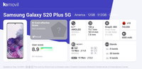 When your target price is reached, you will be able to check alert messages here. ... Add devices to your profile, rate and comment on your smartphones... ... Kimovil may receive compensation from the seller if you purchase through affiliate links. ... I had it... ... The Samsung Galaxy S20 Plus is ... The Samsung Galaxy S20 Plus is an incredibly powerful and feature-packed phone. It was released in February of 2020, and is part of the Samsung Galaxy S20 series which includes the S20, S20 Ultra, and S20 FE. In terms of design and materials, the Galaxy S20 Plus is a sleek and stylish device cra