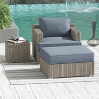 Seating is even more comfortable when you add patio cushions and pillows, which also add a splash of color with their many vibrant designs. You can also protect your outdoor furniture during the winter months with patio seat covers. ... SIRIO Sirio Mya Club Blue and White Aluminum and Resin Wicker Patio Chair Set w/ End Table and Ottoman