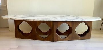 Organic White Marble + Sofita Stone Coffee Table with Live Edge