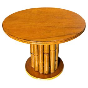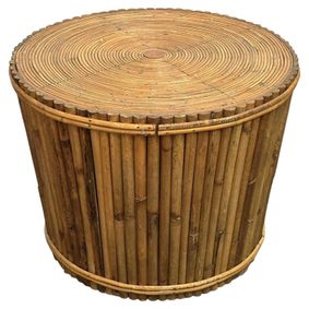Enhance your home decor with our Vintage Round Bamboo and Rattan Side Table. This unique piece features a round design with a beautiful blend of bamboo and rattan, adding a touch of vintage charm to any room. Use it as a side table or coffee table for a functional and stylish addition to your space. Top diameter 26" x 21" tall. In store pickup only or buyer may arrange shipping due to size & weight. .
