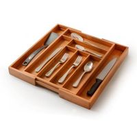 Our Better Homes & Gardens Natural Bamboo Expandable Silverware Organizer includes five main compartments for spoons, knives, forks, and serving utensils with two additional compartments for larger kitchen tools. It is made from 100% bamboo. This drawer organizer is durable and water-resistant so it will withstand years of use. And it is waterproof, insect resistance, which can keep your families from mildew and harmful gas. Bamboo products are easy to clean and can be effectively avoided the reproduction free from mold. The warm, neutral wood coloring will blend elegantly with your decor and