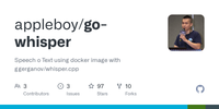 GitHub - appleboy/go-whisper: Speech o Text using docker image with ggerganov/whisper.cpp