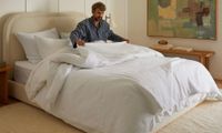 Think about whether you are too warm, too cold, or just right when you sleep. Pick a fabric that will balance with your sleeping temperature - don't get flannel sheets if you burn up at night.