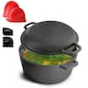 A Dutch Oven is an essential outdoor cooking accessory. These Stansport® Pre-Seasoned Dutch Ovens are ideal for baking and cooking at the campsite, and the flat bottom design of this model is ideal for grill-top or stove-top use. The versatile construction of a Dutch Oven allows you to boil chili, fry chicken, bake biscuits, pops popcorn… and that's just the beginning. The rustic look of cast iron, matched with its long-lasting construction has a rich history in outdoor cooking. The heavy cast iron lid helps keep food moist while cooking, and the overall construction distribute heat evenly whi