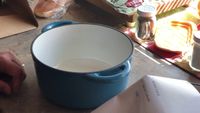 This if the perfect little dutch oven to make soups and stews in for the holidays. It is durable and heavy. It holds heat and makes everything turn out amazing. It is easy to wash and wipe clean. It also makes a good table decoration when not in use. I like the pumpkin lid.