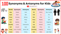 100 English Words with Synonyms and Antonyms for Kids - Engrdu
