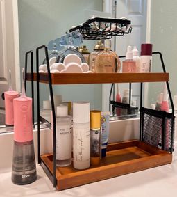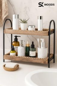 Features: Bathroom, Kitchen Countertop Storage Rack: 2 layer storage rack, easy to organize your bathroom, dressing table, kitchen glass bottles, plastic bottles, stationery, cosmetics and other items. Sturdy, Beautiful And Durable: The main body is made of iron, coated with black anti-rust paint, and the bottom is equipped with non-scratched rubber feet. It has beautiful appearance, can be non-slip, does not hurt the table, and is durable. Easy To Take And Put: Two layers of different widths are designed to make it easier to pick up items. The bottom size is 12.4*6.3 inches and the upp