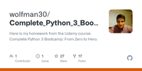 GitHub - wolfman30/Complete_Python_3_Bootcamp-From-Zero-to-Hero: Here is my homework from the Udemy course: Complete Python 3 Bootcamp: From Zero to Hero. · GitHub