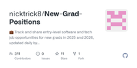 GitHub - nicktrick8/New-Grad-Positions: 💼 Track and share entry-level software and tech job opportunities for new grads in 2025 and 2026, updated daily by Coder Quad and Simplify.