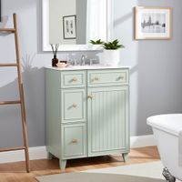 Flexible Installation: Simplifies installation processes by allowing separate handling of cabinets and vanity tops · Multiple Styles and Finishes: Available in various finishes, from classic wood to sleek modern designs, matching any décor · Quality Craftsmanship: Built from durable, moisture-resistant materials for lasting performance · Flexible Sizing: Offered in numerous dimensions, fitting comfortably into various bathroom layouts · Optimized Storage: Thoughtfully designed storage solutions, including drawers and shelves for easy organization