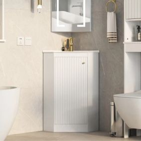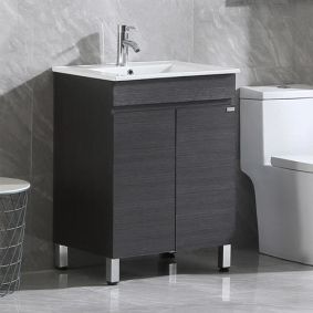 Featuring a porcelain top and integrated sink, this 24 In. Gray Vanity provides functional storage with a clean, modern design for bathroom spaces.