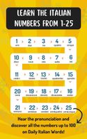 Learn the word for "Twenty five" and other related vocabulary in Italian so that you can talk about Counting with confidence.