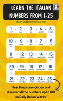 The number 25 in Italian is venticinque. Find out how to say any number in Italian up to 9999.