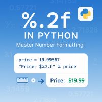 January 16, 2026 - When you see .2f, it essentially means that you're asking Python to format a number as a float with two decimal places. Imagine you have a variable representing the price of an item: price = 19.99.