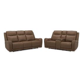 Another Woodward Park homerun in top-grain brown leather with leather-look fabric match The Power Reclining 3-piece set includes sofa, console loveseat and recliner with extended footrests on all four recliners. ... On-trend Chesterfield style two-piece living room set consists of sofa and ...