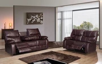 With generous seating for family and friends, this set is perfect for movie nights or cozy gatherings. Treat yourself to the epitome of comfort with our 3-piece Faux Leather Reclining Living Room Set today! The sofa is comfortable and looks like real leather (brown) The delivery men were quick and assembled it well and took away all the packaging..