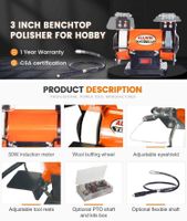 3" Multipurpose Mini Bench Grinder Polisher with 31" Long Flexible Shaft and Accessories, Variable Speed Dial 0-10000 RPM, 110V 150W Single Phase Motor in Polishers.