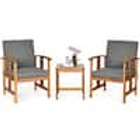 3-Piece Acacia Wood Patio Conversation Set with Gray Cushions Outdoor Furniture Set
