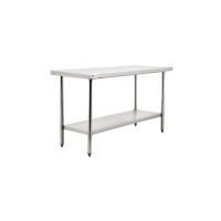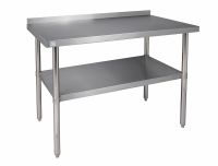 This Foodservice 30" x 60" stainless Steel work table is durable and provides a place for storage or prep in the kitchen.<>Back splash<>Stainless steel top<>Top Shelf Weight Capacity: 500 lbs.<>Bottom Shelf Capacity: 400 lbs."