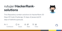 GitHub - rutujar/HackerRank-solutions: This Repository contain solutions to HackerRank 30 Days Of Code Challenge, 10 days of javascript,10 days of statistics,java,sql.