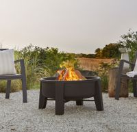 Gather your family and friends and get ready to make memories around this Backyard Creations® fire pit. This oversized wood-burning fire pit has a 35-inch bowl that's ideal for all your big backyard fires. The beautiful burnished bronze finish will look great alongside your other outdoor décor. The built-in grate allows for better circulation, so your fire will always provide the warmth you need on those extra chilly nights. Grab your s'more supplies and get your campfire stories ready for a relaxing evening gathered around this steel fire pit.