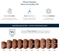 Sometimes "classic" is "classic" for a reason. The beautiful, copper apron front of the Adams farmhouse kitchen sink is both classic and striking, while immediately elevating any space. The double bowl design allows space for washing and drying at the same time. Our durable, solid copper sinks are hand-hammered by skilled craftsman and protected by our lifetime warranty.Dimensions: 35.65" x 22" x 9"Bold farmhouse apron creates an alluring and central focal point Double bowl helps separate the clean dishes from the dirtyHand-hammered, solid 16-gauge copper is protected by our lifetime warrantyS