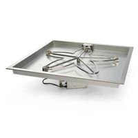 With the flexibility to accommodate liquid propane or natural gas, this 36 square fire pit insert emits up to 250k BTUs via a 30 star-shaped burner. Made from #304, 18-gauge stainless steel, the welded gas fittings and drainage holes offers the security and protection that makes this one of the most durable products on the market. Recessed in a 2.5 pan with a 1.3 pan lip surround, the raised hub burner of this shimmering flame of brilliance comes equipped with an on/off switch and 120vac power supply. You also have the luxury of purchasing some additional cool accessories such as timers, conve