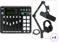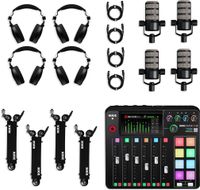 RODE RODECaster Pro II + 4x Headphones + 4x Podcast Microphone + 64GB Micro SD Memory Card + Mic Arm Stand + 2x USB-C + More (Bundle) · Rockville 4-Person Podcast Recording Package LINE8 USB 8-Channel Mixer and USB Audio Interface with (4) PRO-M50 Headphones, (4) RMIC-SR Mics, Stands, RHPA4 ...