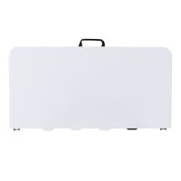 This square folding table is beneficial in a multitude of settings that include banquet halls, conference centers, cafeterias, schools and in the home. The table can be used as a temporary seating solution or be setup for everyday use. The bi-fold feature folds the table in half the size and includes a carrying handle for easy transport. The durable blow molded top is low maintenance and cleans easily. The table legs fold under the table to make storage more convenient and for better portability. This table is commercial grade to withstand everyday use in the hospitality industry. Multipurpose