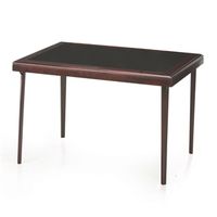 Seat up to six guests at this Rectangle 44-inch Wooden Folding Table with Black Vinyl Inset. This folding table is constructed of stylish wood in a rich mahogany finish. A leather-like black vinyl inset gives this table a quality look that will make its folding features a surprise to those who see it. It features quality construction like mitered corners, routing details, and contoured edges. The best part about this table is that when you don't need it out any more, you simply tuck the legs under and store it in a closet. · Rectangle 44-inch Wooden Folding Table with Black Vinyl Inset · Leg M