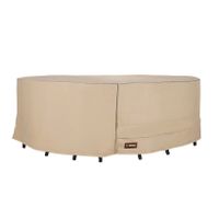 Outdoor Patio Dining Set Cover, Round Table Standard Dimensions: 65" Diameter x 23" H XL Dimensions: 94" Diameter x 27" H High-density Vinyl with 300 Denier Polyester Liner Heavy-duty Weather and Fade Resistant Fabric Low Maintenance Material ...