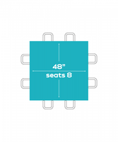 Great for dining or as a beautiful cake table. Use a 108" square linen for a perfect fit. Seats 4-6 guests. 30" leg height.