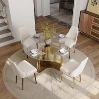 5-Piece Modern Round Glass Dining Table Sets for 4, 51" Round Clear Glass Dining Room Sets for 4, Round Dining Table with 4 Chairs