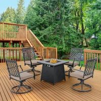Bring warmth and comfort to your outdoor gatherings with this 5-piece outdoor conversation set, featuring four swivel rocking chairs and a multifunctional fire pit table. Designed for both relaxation and functionality, the outdoor patio rocker ...