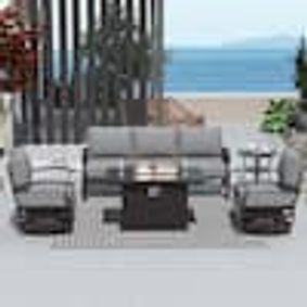 Halmuz Patio Conversation includes 2-Swivel Chairs, 1-Coffee Table, 3-Seater Sofa, and 1-Fire Pit Table. We have upgraded the Halmuz Patio Conversation Set, extra thick cushion, of foam material that provides great comfort. It is a full 5 in. The PP cotton pillows are also very full. Using high-quality vertical cotton, thickened cushions are elastic and soft, increasing comfort.