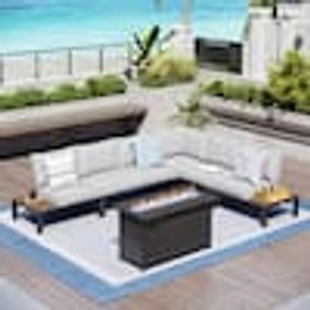 Check each product page for other buying options. Price and other details may vary based on product size and color · UDPATIO 5 Piece Patio Furniture Set with Fire Pit Table, 8''Wide Armrest Modular Rattan Outdoor Sectional Sofa Set,Wicker Patio Conversation Sets for Backyard,Deck w/ 4'' ...