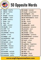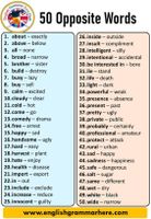 50 Opposite Words in English | Antonyms words in English | Opposite ...