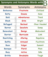 100 Words with Synonyms and Antonyms A to Z with PDF
