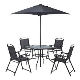 eventswholesale.com › nantucket-6-piece-black-patio-garden-set-with-umbrella-table-and-set-of-4-folding-chairs
