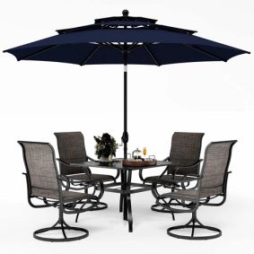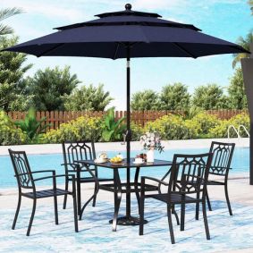 Elevate your outdoor dining experience with patio sets featuring umbrellas with features like LED lights, tilt functionality, and easy-to-use hand cranks.