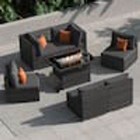 Patio Furniture Set:Elevate outdoor moments with our expansive sectional sofa, ideal for gatherings of 5 friends. Crafted for versatile placement, it complements any setting seamlessly.