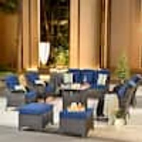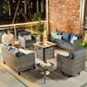 homedepot.com › p › OVIOS-Joyoung-Gray-7-Piece-Wicker-Patio-Rectangle-Fire-Pit-Conversation-Set-with-Denim-Blue-Cushions-and-Swivel-Chairs-CFPGNTC306R › 325066721