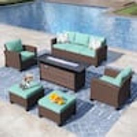 Amazon.com: Halmuz 7 Pieces Outdoor Patio Furniture Set with 43"/55000BTU Gas Fire Pit Table,PE Rattan Wicker Outdoor Conversation Sofa Set Non-Slip Cushions Waterproof Covers for Backyard,Poolside,Garden,Black : Patio, Lawn & Garden