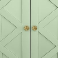 A must-have for any location, this TV stand is full of cozy cottage vibes. Crafted from distressed solid wood, it features a natural finish that highlights grain variations (knots and all). Four louvered doors open to reveal adjustable shelves with more than enough storage space for media players and other game-night essentials. Cable-management cutouts help corral cords, and the top accommodates flat screens up to 70".