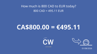 What's the best 800 EUR to CAD exchange rate today?