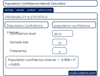 Population Confidence Interval Calculator is an online statistics and probability tool for data analysis programmed to calculate whether a set of statistical results are expected to have occurred by chance. The Confidence Interval Proportion calculation can be performed by the input values of confident interval level, sample size and frequency