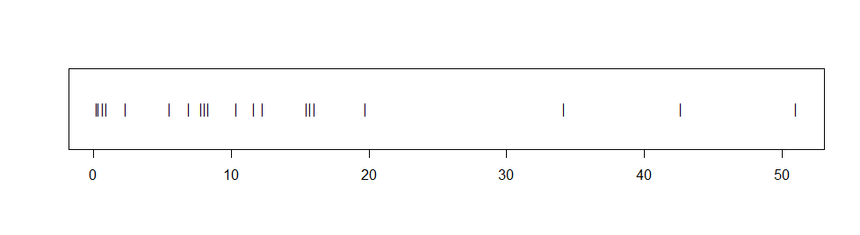 Addendum on bootstrap CI: If data seem non-normal, but the actual population distribution is unknown, then a 95% nonparametric bootstrap CI may be the best choice. Suppose we have $n=20$ observations from an unknown distribution, with $\bar X$ = 13.54$ and values shown in the stripchart below.