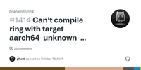 Can't compile ring with target aarch64-unknown-linux-musl · Issue #1414 · briansmith/ring